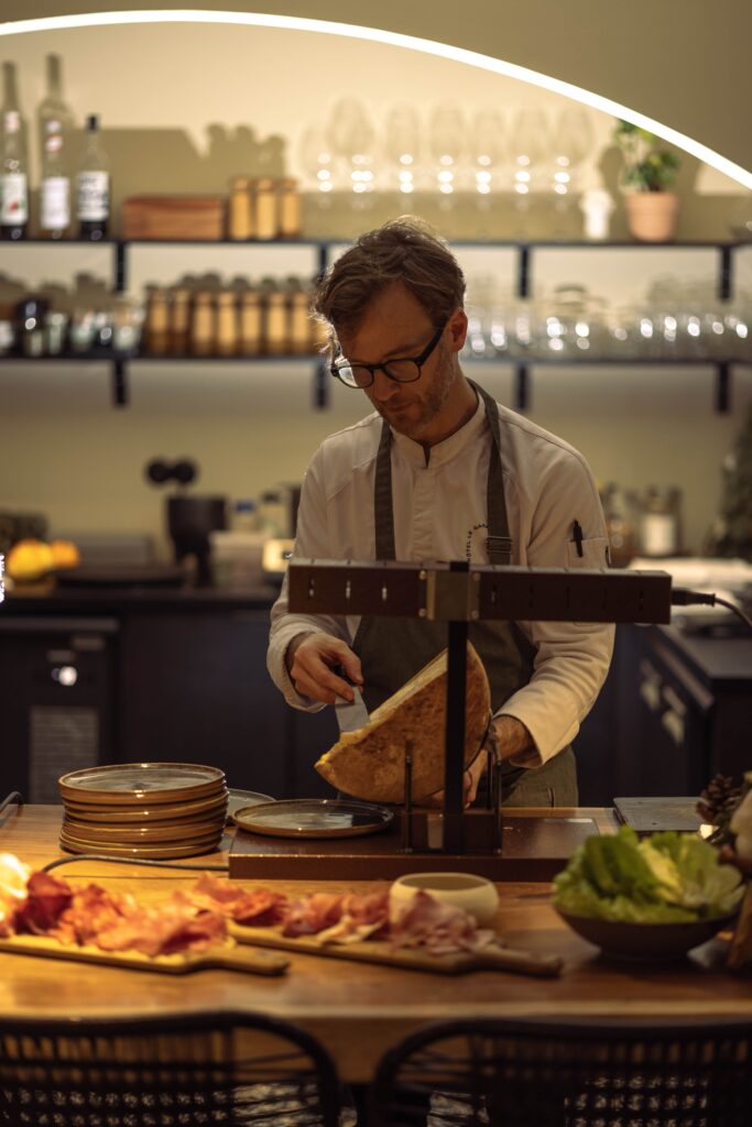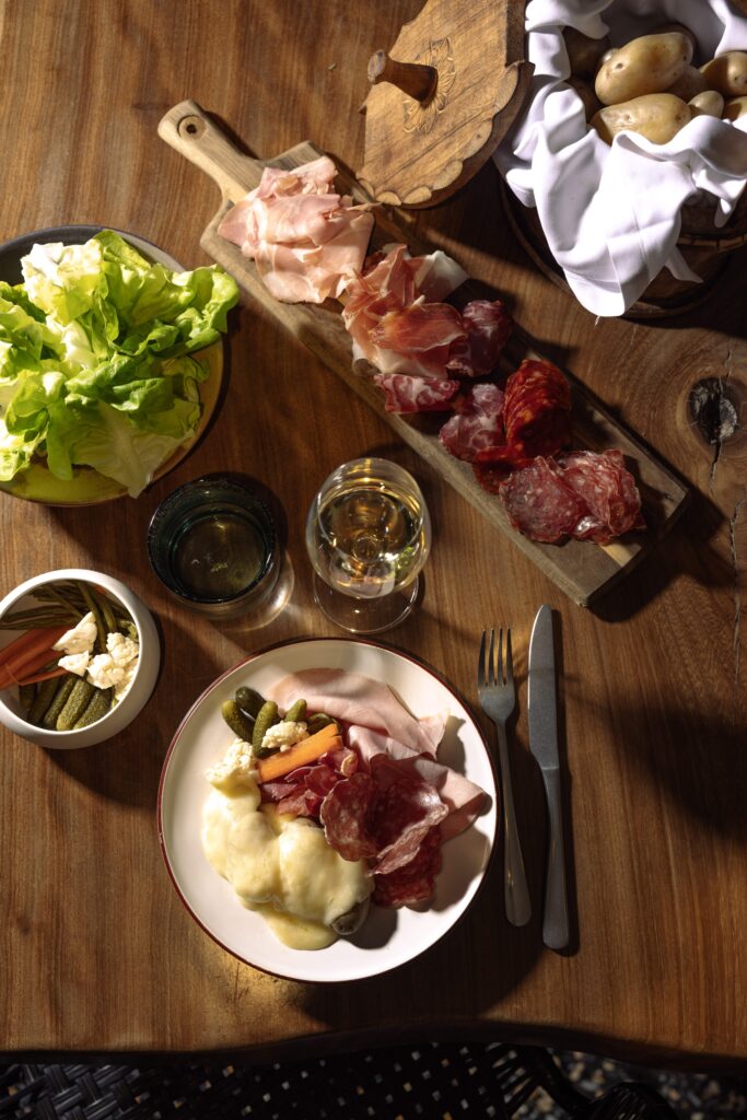 À la carte, la raclette à volonté, pommes de terre fumantes, assiette de charcuterie, salade fraîche et pickles. Pour les amateurs : une option végétarienne avec ses légumes rôtis. Le tout accompagné des cocktails signature du Garage : un vin chaud relevé, ou le Tout Schuss, mélange de mezcal, rhum infusé et notes épicées. Le dîner se prolonge avec une fondue au chocolat, fruits frais et chantilly vanille. Une parenthèse gourmande, simple et généreuse.